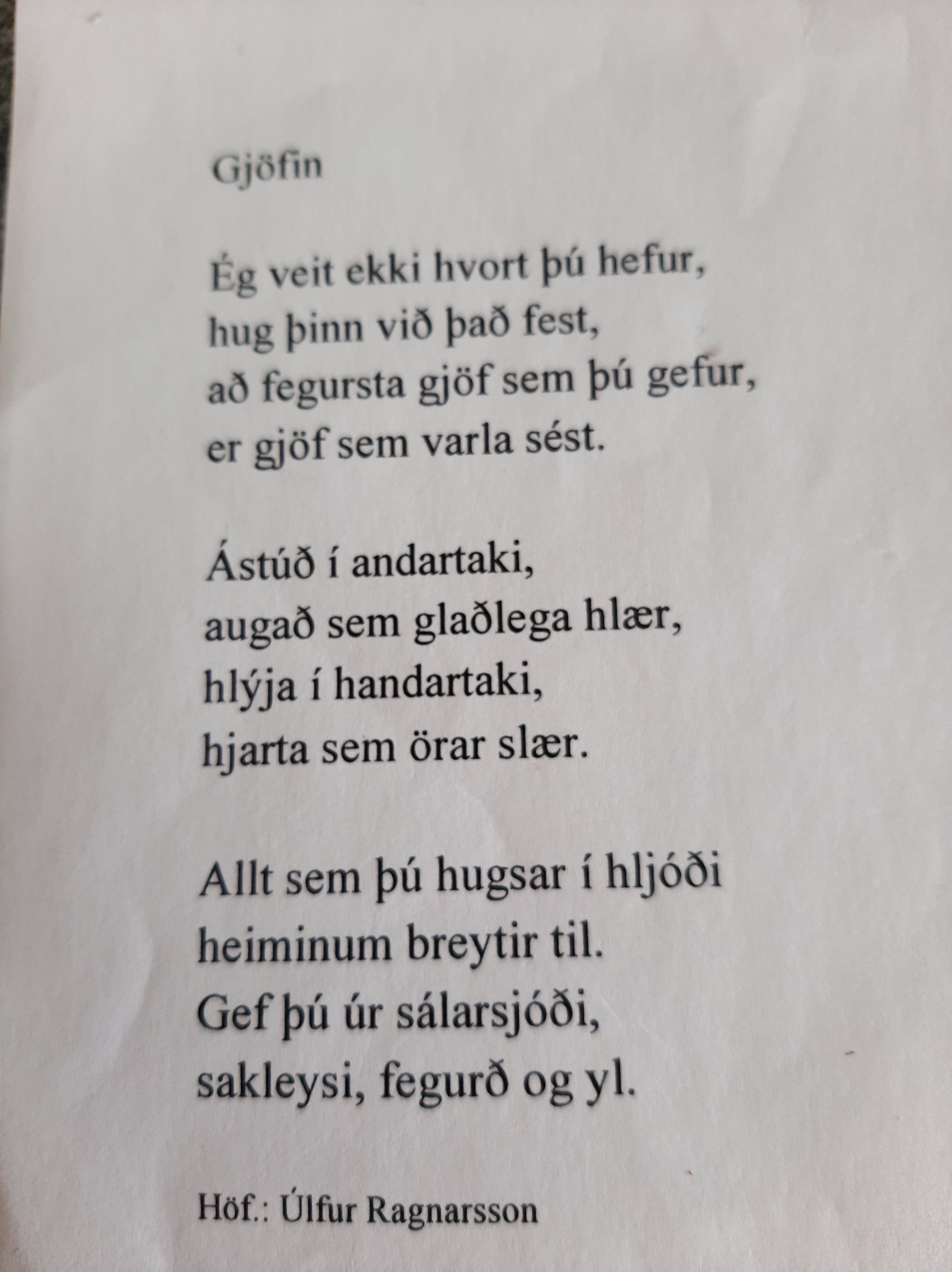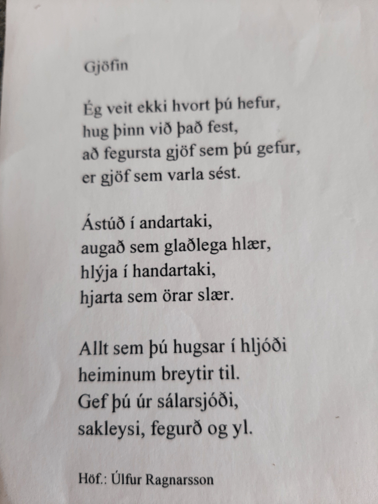 en glerið er brothætt og grjótið er víða.Mér gersemin dýra var gefin í hönd;