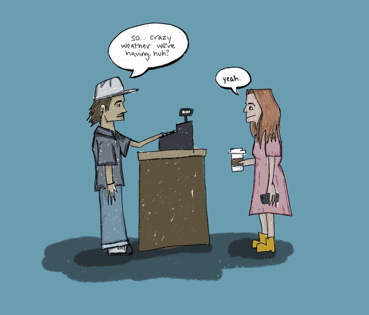 •Ef samtölin eru við afgreiðslufólk gildir ekki að tala eingöng um vöruna eða viðskiptin. Það telur aðeins ef við færum umræðuefnið út fyrir viðskiptin
