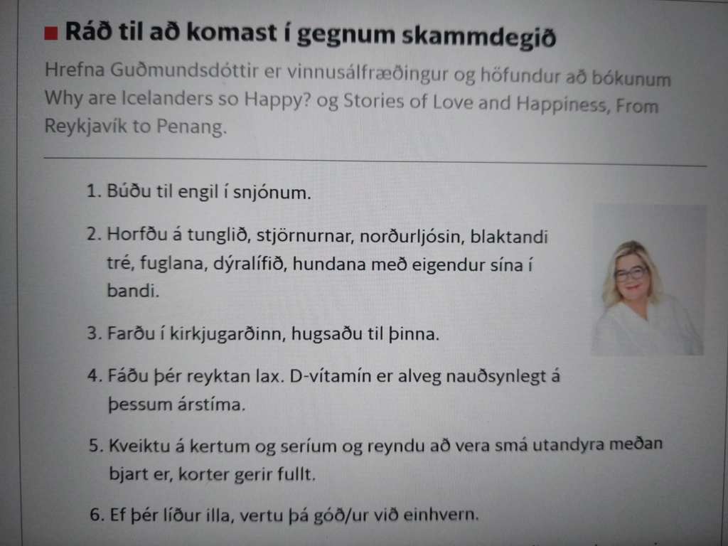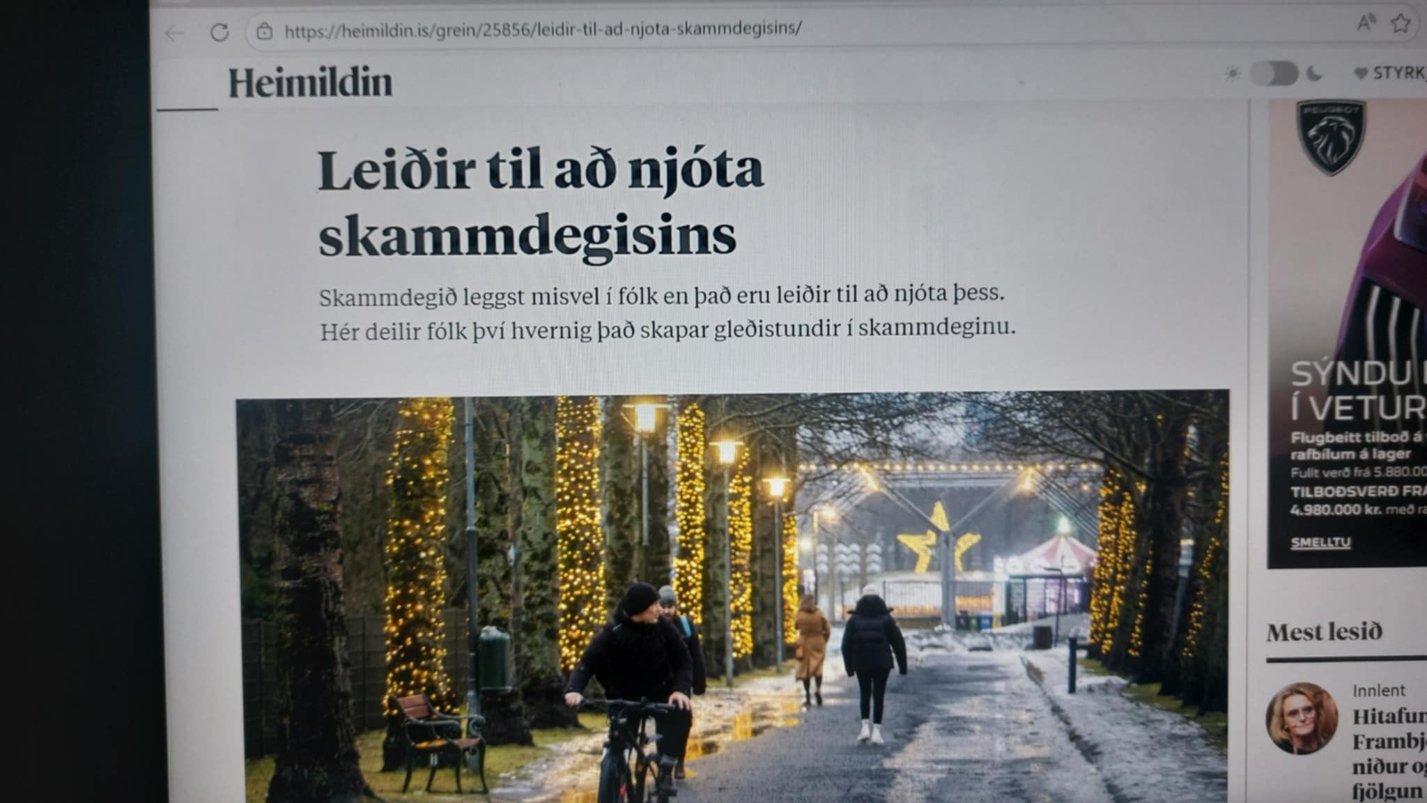 February 13, 2026 Gaudeamus Skammdegið – tími til að: Heimildin bað mig um ráð og hér komu þau – átti að vera ráð fyrir desember/aðventuna – enn birtist í janúar 2026 í stað nóvemberlok 2025. Enn vola! Share this: Share on X (Opens in new window) X Share on Facebook (Opens in new window) Facebook Like Loading... Related